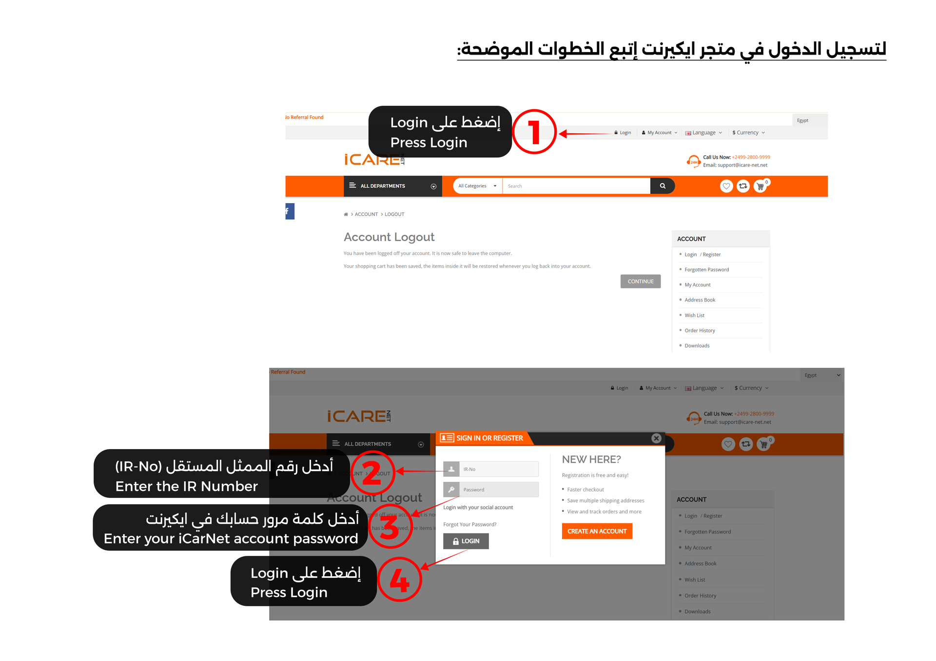 If you are experiencing any difficulty accessing the iCareNet online store, please follow the steps below to log in to your account smoothly and securely 👇